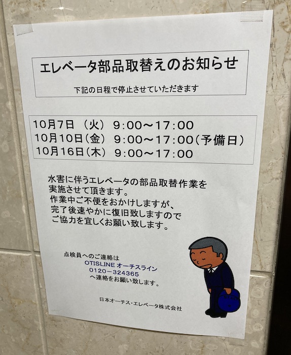 お知らせ 2025年10月6日2025年10月6日はりやいわた エレベータの部品取り替えのため下記の日程で、エレベータが休止します。 10月7日(火)9時〜17時 10月10日(金)9時〜17時(予備日) 10月16日(木)9時〜17時 ご不便をおかけしますが、よろしくお願いいたします。 共有: Facebook で共有するにはクリックしてください (新しいウィンドウで開きます) Facebook クリックして X で共有 (新しいウィンドウで開きます) X 関連